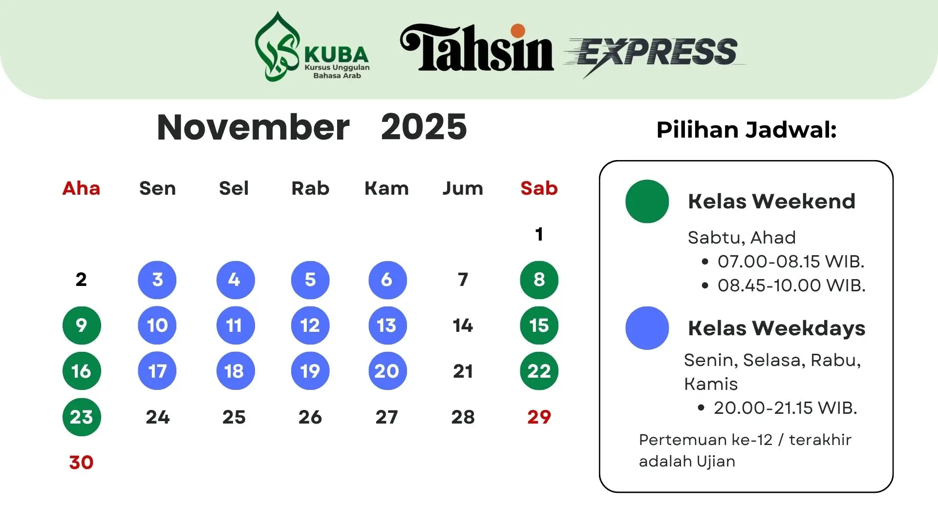 - Kursus Privat Tahsin 2 kali pertemuan, 1 murid 1 guru (durasi total 120 menit)